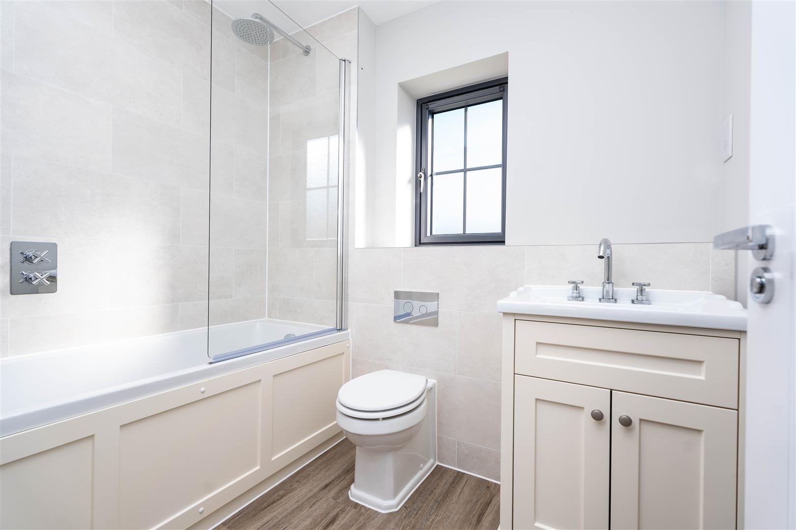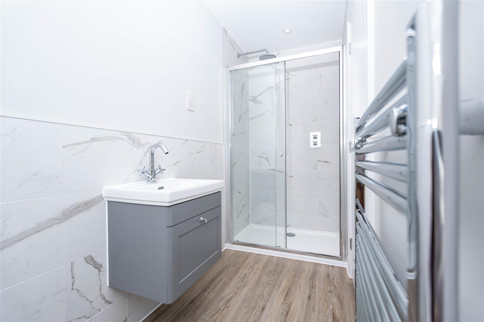 Key features include designer white sanitaryware from a range of leading brands with chrome fittings, Camaro LVT flooring, shaver point, LED downlights and heated chrome towel rail.