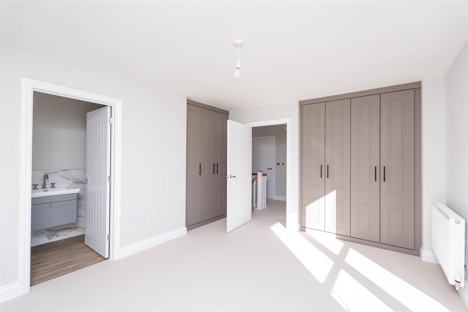 A rear aspect bedroom with two fitted wardrobes and en-suite. Juliette balcony with views over the back garden and surrounding countryside.