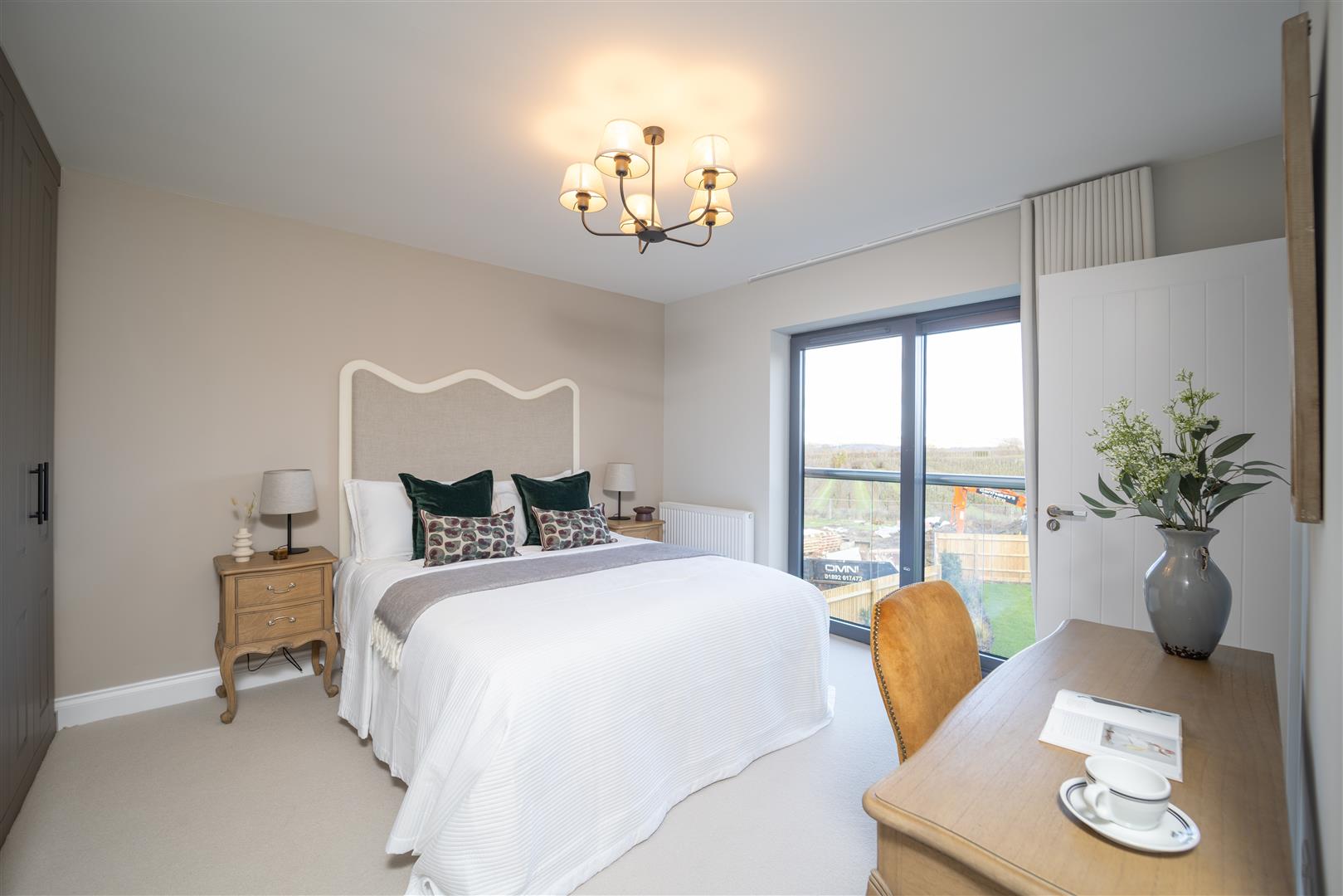 A rear aspect bedroom with fitted wardrobe and en-suite. Juliette balcony with views over the back garden and surrounding countryside..