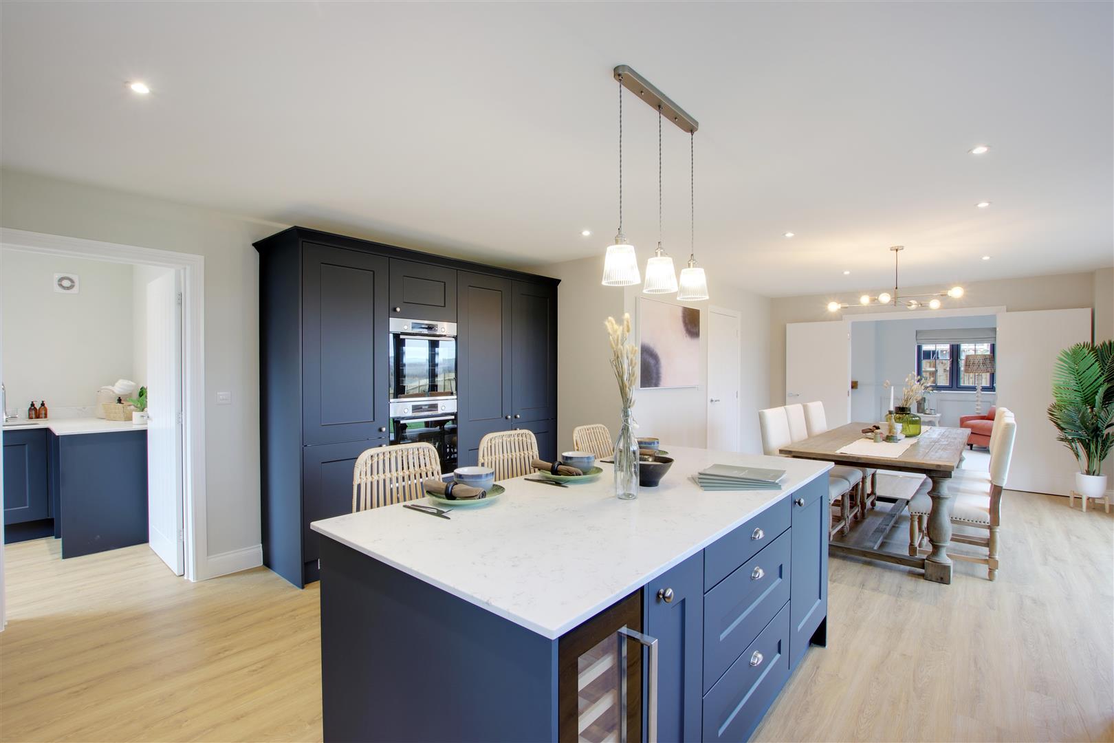 Blending a timeless Kentish inspired exterior with the appeal of a brand new property, Home 8 is a exquisite 5-bedroom 3-bathroom family home. At the heart of the home, the shaker style Gardiner of England kitchen, with integrated Bosch appliances, and dining area, with bi-folding doors, is the perfect destination for a delicious homecooked meal. Whilst the separate, triple aspect living room with patio doors and fireplace, suitable for housing a log burner, offers a beautiful space for both relaxation and entertaining. The ground floor also boasts a home office, utility room and W.C. Upstairs, the property has 5 bedrooms, two of which have en-suites, and a family bathroom. External features include a turfed rear garden, with Indian sandstone patio, and private block paved driveway, double garage and EV charger.