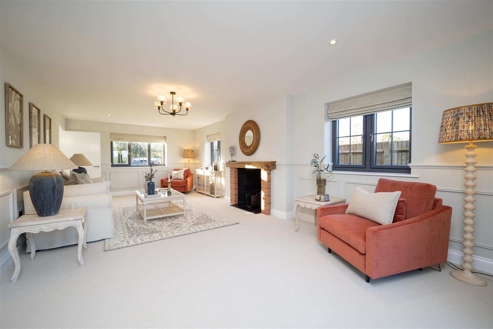 A triple aspect entertaining space with fireplace, constructed of brick surround and wooden bressummer beam over, which is capable of housing a log burner.